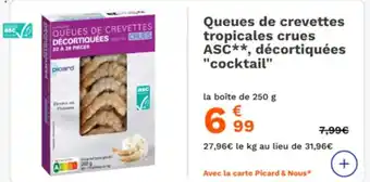 Y a-t-il une promotion sur Queues de crevettes tropicales crues ASC, décortiquées cocktail la semaine prochaine chez Picard ?