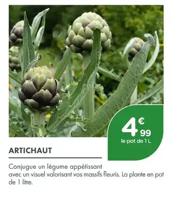 L'offre est disponible dans plusieurs magasins, vérifiez tous les produits pour obtenir le Artichaut le moins cher. Si vous souhaitez savoir si l'article est en vente avec une plus grosse remise dans un autre magasin, consultez la catégorie 'Jardineries et Animaleries'. Ces offres pourraient aussi vous intéresser : Artichaut, Nutrivie radis noir artichaut x 20 & Poélée cuisinée aux céréales, artichauts et butternut.