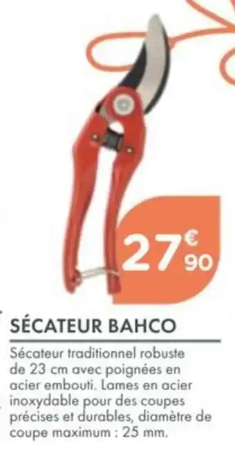 Sécateur bahco bénéficie actuellement d'une réduction chez Point Vert. Vous trouverez ici toutes les infos utiles sur les prix, la durée de validité et les conditions de l’offre. Pensez à consulter aussi d'autres offres et promotions similaires pour Sécateur bahco afin d’acheter toujours au bon prix. La promo Sécateur bahco est valable du 13-04-2026 au 25-04-2026. Offre terminée ? Pas de souci. D'autres offres sur ces produits sont peut-être déjà disponibles. Vous pouvez suivre cette catégorie de produits pour rester informé en cas de nouvelle promotion Sécateur bahco chez Point Vert. En comparant les offres, vous êtes sûr d’acheter au prix le plus bas possible.Questions fréquemment posées au sujet de Sécateur bahco
