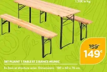 Set pliant 1 table et 2 bancs munic