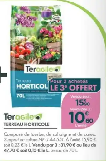 En plus de l'offre Teragile terreau horticole, Point Vert propose une large gamme de produits. Consultez le Catalogue Point Vert hebdomadaire pour découvrir les meilleures offres et promotions. En plus de Teragile terreau horticole, il y a aussi : Terreau horticole, TERREAU HORTICOLE & Terreau horticole.