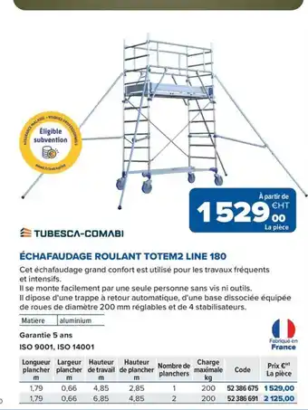 Offre TUBESCA-COMABI Échafaudage roulant totem2 line 180 chez Prolians