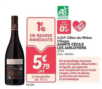 A.o.p. côtes-du-rhône villages sainte cècile : offres et promos Promocash à découvrir