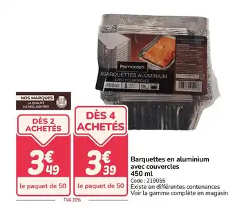 Le prix de l'offre Barquettes en aluminium avec couvercles se trouve également en haut de la page, ainsi que la date à laquelle l'offre est disponible. Vous pouvez également vérifier les prix dans le Catalogue Promocash actuel ou sur le site Internet de Promocash. Les offres vous permettent d'acheter les produits Promocash au prix le plus bas.