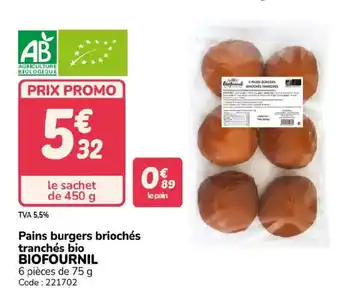 BIOFOURNIL Pains burgers briochés tranchés bio 75 g