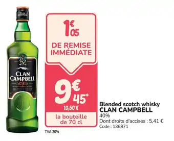 Blended scotch whisky clan campbell : offres et promos Promocash à découvrir