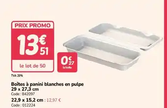 Boîtes à panini blanches en pulpe : offres et promos Promocash à découvrir