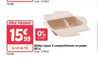 Boîtes repas 2 compartiments en pulpe offres et promotions en ligne chez Promocash