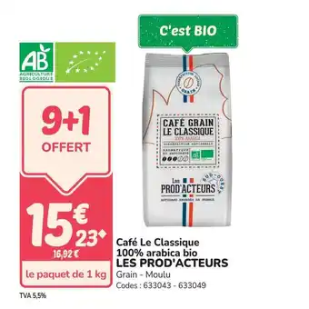 Offre Café le classique 100% arabica bio les prod'acteurs chez Promocash