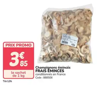 Actuellement en offre chez Promocash : Champignons émincés frais ĕmincés ✅ Valable du 31-03 au 25-04.