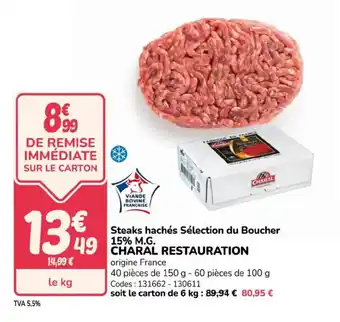 CHARAL RESTAURATION Steaks hachés Sélection du Boucher 15% M.G. 1 kg