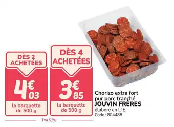 Chorizo extra fort pur porc tranché jouvin frères : offres et promos Promocash à découvrir