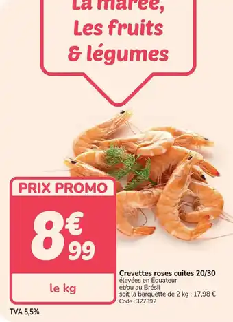 En plus de l'offre Crevettes roses cuites 20/30, Promocash propose une large gamme de produits. Consultez le Catalogue Promocash hebdomadaire pour découvrir les meilleures offres et promotions. En plus de Crevettes roses cuites 20/30, il y a aussi : Crevettes roses entières cuites, Crevettes cuites & CREVETTES CUITES.