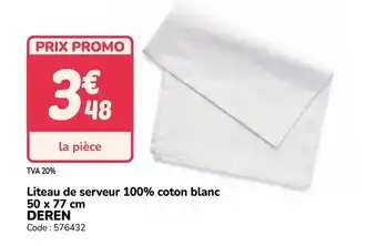 DEREN Liteau de serveur 100% coton blanc : offres et promos Promocash à découvrir