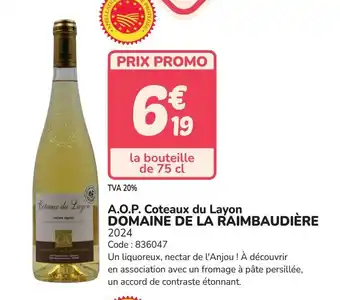 DOMAINE DE LA RAIMBAUDIÈRE A.O.P. Coteaux du Layon offres et promotions en ligne chez Promocash