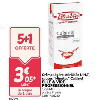 Actuellement en offre chez Promocash : ELLE & VIRE PROFESSIONNEL Crème légère stérilisée U.H.T. sauces Minutes Cuisinel ✅ Valable du 19-02 au 28-02.