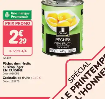 Le prix de l'offre EN CUISINE Pêches demi-fruits au sirop léger se trouve également en haut de la page, ainsi que la date à laquelle l'offre est disponible. Vous pouvez également vérifier les prix dans le Catalogue Promocash actuel ou sur le site Internet de Promocash. Les offres vous permettent d'acheter les produits Promocash au prix le plus bas.