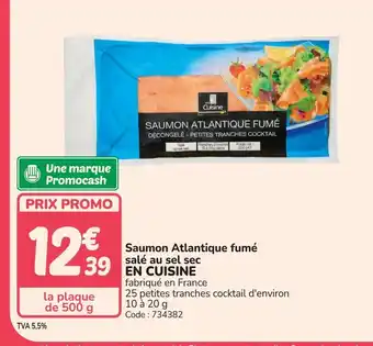 Actuellement en offre chez Promocash : EN CUISINE Saumon Atlantique fumé salé au sel sec ✅ Valable du 16-03 au 28-03.