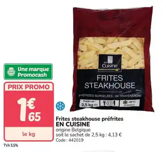 Le prix de l'offre Frites steakhouse préfrites en cuisine se trouve également en haut de la page, ainsi que la date à laquelle l'offre est disponible. Vous pouvez également vérifier les prix dans le Catalogue Promocash actuel ou sur le site Internet de Promocash. Les offres vous permettent d'acheter les produits Promocash au prix le plus bas.