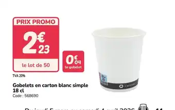 Une promotion Gobelets en carton blanc simple prévue la semaine prochaine ?