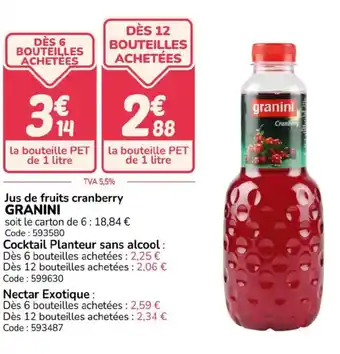 GRANINI Jus de fruits cranberry offres et promotions en ligne chez Promocash