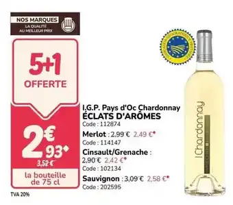 I.g.p. pays d'oc chardonnay éclats d'arômes : offres et promos Promocash à découvrir