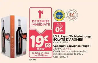 I.g.p. pays d'oc merlot rouge éclats d'arômes offres et promotions en ligne chez Promocash