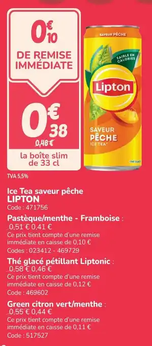En plus de l'offre Ice tea saveur pêche lipton, Promocash propose une large gamme de produits. Consultez le Catalogue Promocash hebdomadaire pour découvrir les meilleures offres et promotions. En plus de Ice tea saveur pêche lipton, il y a aussi : Ice tea saveur pêche lipton, Lipton Saveur Framboise Ice Tea & Ice tea lipton.