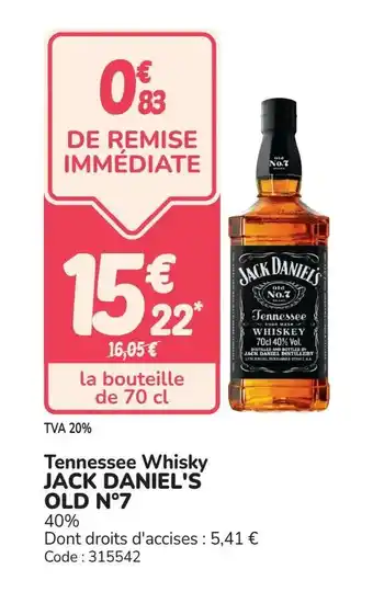En plus de l'offre JACK DANIEL'S OLD N°7 Tennessee Whisky, Promocash propose une large gamme de produits. Consultez le Catalogue Promocash hebdomadaire pour découvrir les meilleures offres et promotions. En plus de JACK DANIEL'S OLD N°7 Tennessee Whisky, il y a aussi : Tennessee Whiskey JACK DANIEL'S Old n°7, Jack daniel s tennessee jack daniel's tennessee blackberry & Jack daniel s tennessee jack daniel's tennessee blackberry.