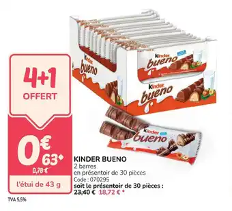 En plus de l'offre Kinder bueno, Promocash propose une large gamme de produits. Consultez le Catalogue Promocash hebdomadaire pour découvrir les meilleures offres et promotions. En plus de Kinder bueno, il y a aussi : KINDER BUENO, KINDER BUENO & KINDER BUENO.
