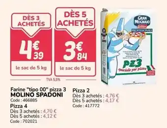 Cette Molino spadoni - farine tipo 00 pizza 2 est maintenant disponible chez Promocash. Découvrez toutes les promos en cours et profitez de réductions intéressantes. Commandez Molino spadoni - farine tipo 00 pizza 2 en ligne via le site officiel de Promocash ou achetez-la en magasin à un prix avantageux. Promocatalogues.fr réunit chaque jour les meilleures offres liées à Molino spadoni - farine tipo 00 pizza 2. Envie d’être informé en premier ? Activez l’alerte en cliquant sur la cloche pour recevoir une notification gratuite dès que ce produit revient en promotion.Questions fréquemment posées au sujet de Molino spadoni - farine tipo 00 pizza 2