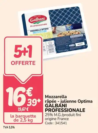 Offre Mozzarella râpée-julienne optima galbani professionale chez Promocash