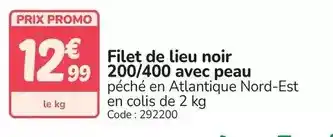 Offre Promo - filet de lieu noir 200/400 avec peau chez Promocash