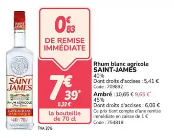 Offre Rhum blanc agricole saint-james chez Promocash