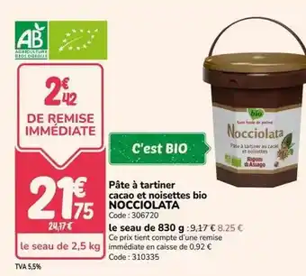 Rigoni di asiago - pâte à tartiner cacao et noisettes bio : offres et promos Promocash à découvrir
