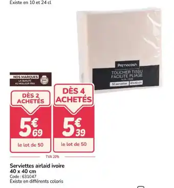 Offre Serviettes airlaid ivoire chez Promocash