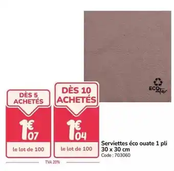 Serviettes éco ouate 1 pli 30 x 30 cm offres et promotions en ligne chez Promocash