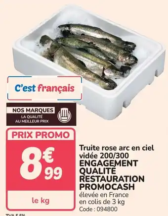 Offre Truite rose arc en ciel vidée 200/300 engagement qualité restauration promocash chez Promocash