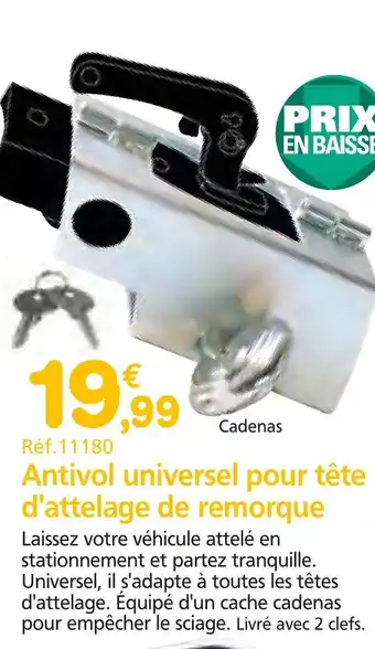 Antivol universel pour tête d'attelage de remorque offres et promotions en ligne chez Provence Outillage