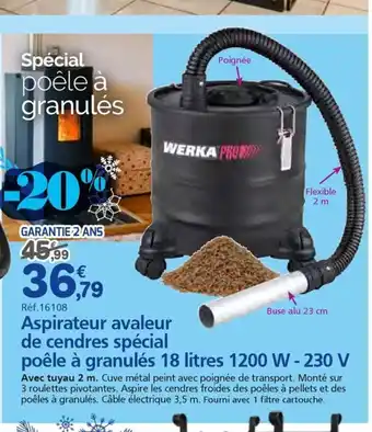 Actuellement en offre chez Provence Outillage : Aspirateur avaleur de cendres spécial poêle à granulés 18 litres 1200 W - 230 V ✅ Valable du 7-01 au 3-02.