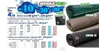 Actuellement en offre chez Provence Outillage : WERKA PRO Brise vue renforcé luxe ✅ Valable du 7-01 au 3-02.