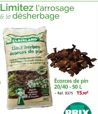 Le prix de l'offre Écorces de pin se trouve également en haut de la page, ainsi que la date à laquelle l'offre est disponible. Vous pouvez également vérifier les prix dans le Catalogue Provence Outillage actuel ou sur le site Internet de Provence Outillage. Les offres vous permettent d'acheter les produits Provence Outillage au prix le plus bas.