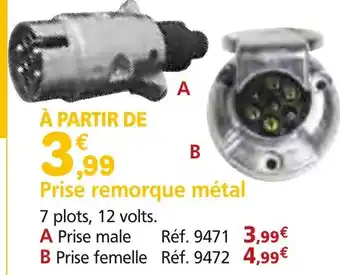 Le prix de l'offre Prise remorque métal se trouve également en haut de la page, ainsi que la date à laquelle l'offre est disponible. Vous pouvez également vérifier les prix dans le Catalogue Provence Outillage actuel ou sur le site Internet de Provence Outillage. Les offres vous permettent d'acheter les produits Provence Outillage au prix le plus bas.