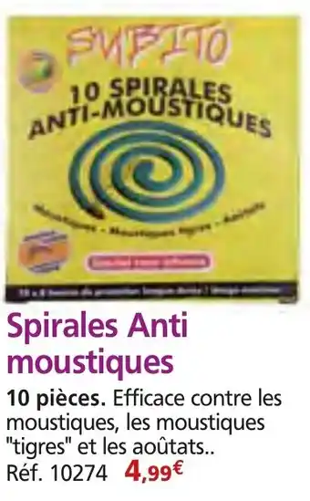 Le prix de l'offre Spirales Anti moustiques se trouve également en haut de la page, ainsi que la date à laquelle l'offre est disponible. Vous pouvez également vérifier les prix dans le Catalogue Provence Outillage actuel ou sur le site Internet de Provence Outillage. Les offres vous permettent d'acheter les produits Provence Outillage au prix le plus bas.