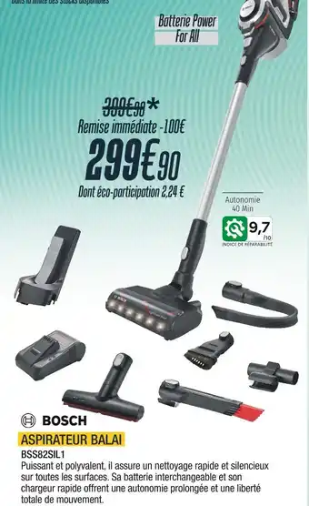 L'offre est disponible dans plusieurs magasins, vérifiez tous les produits pour obtenir le Bosch aspirateur balai le moins cher. Si vous souhaitez savoir si l'article est en vente avec une plus grosse remise dans un autre magasin, consultez la catégorie 'Multimédia et Electroménager'. Ces offres pourraient aussi vous intéresser : BOSCH Aspirateur balai BSS82SIL1, BOSCH Aspirateur balai BCH3K2851 & BOSCH Aspirateur balai.