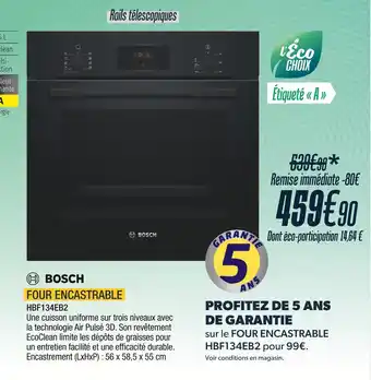 Quand Bosch four encastrable sera-t-elle en promotion ? Ou encore : "Est-ce que Bosch four encastrable sera en promotion la semaine prochaine ?" C’est une question fréquente. Beaucoup de consommateurs établissent leur liste de courses à l’avance. Pour cette raison, nous mettons en ligne les informations sur les promos à venir dès qu’elles sont connues. Cela vous permet de planifier vos achats et de faire de bonnes affaires. Consultez régulièrement notre site pour savoir si une nouvelle promo sur Bosch four encastrable arrive bientôt chez Proxi Confort.Questions fréquemment posées au sujet de Bosch four encastrable