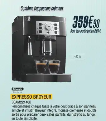 L'offre est disponible dans plusieurs magasins, vérifiez tous les produits pour obtenir le Delonghi expresso broyeur le moins cher. Si vous souhaitez savoir si l'article est en vente avec une plus grosse remise dans un autre magasin, consultez la catégorie 'Multimédia et Electroménager'. Ces offres pourraient aussi vous intéresser : DELONGHI Expresso broyeur ECAM22140B, DELONGHI Expresso broyeur & Delonghi expresso broyeur.