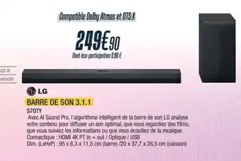 LG Barre de son 3.1.1 S70TY : offres et promos Proxi Confort à découvrir