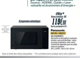 Quand PANASONIC Micro-ondes NN-E48NBMEPG sera-t-elle en promotion ? Ou encore : "Est-ce que PANASONIC Micro-ondes NN-E48NBMEPG sera en promotion la semaine prochaine ?" C’est une question fréquente. Beaucoup de consommateurs établissent leur liste de courses à l’avance. Pour cette raison, nous mettons en ligne les informations sur les promos à venir dès qu’elles sont connues. Cela vous permet de planifier vos achats et de faire de bonnes affaires. Consultez régulièrement notre site pour savoir si une nouvelle promo sur PANASONIC Micro-ondes NN-E48NBMEPG arrive bientôt chez Proxi Confort.Questions fréquemment posées au sujet de PANASONIC Micro-ondes NN-E48NBMEPG