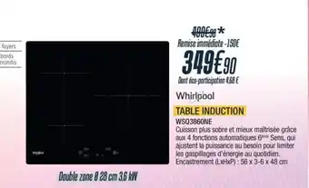 Y a-t-il une promotion sur WHIRLPOOL Table induction WSQ3860NE la semaine prochaine chez Proxi Confort ?
